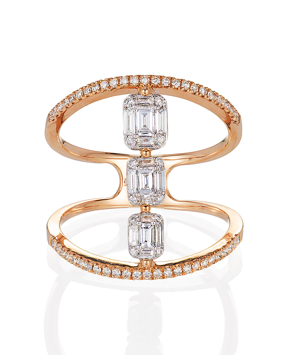 • 14k gold triple decker diamond ring