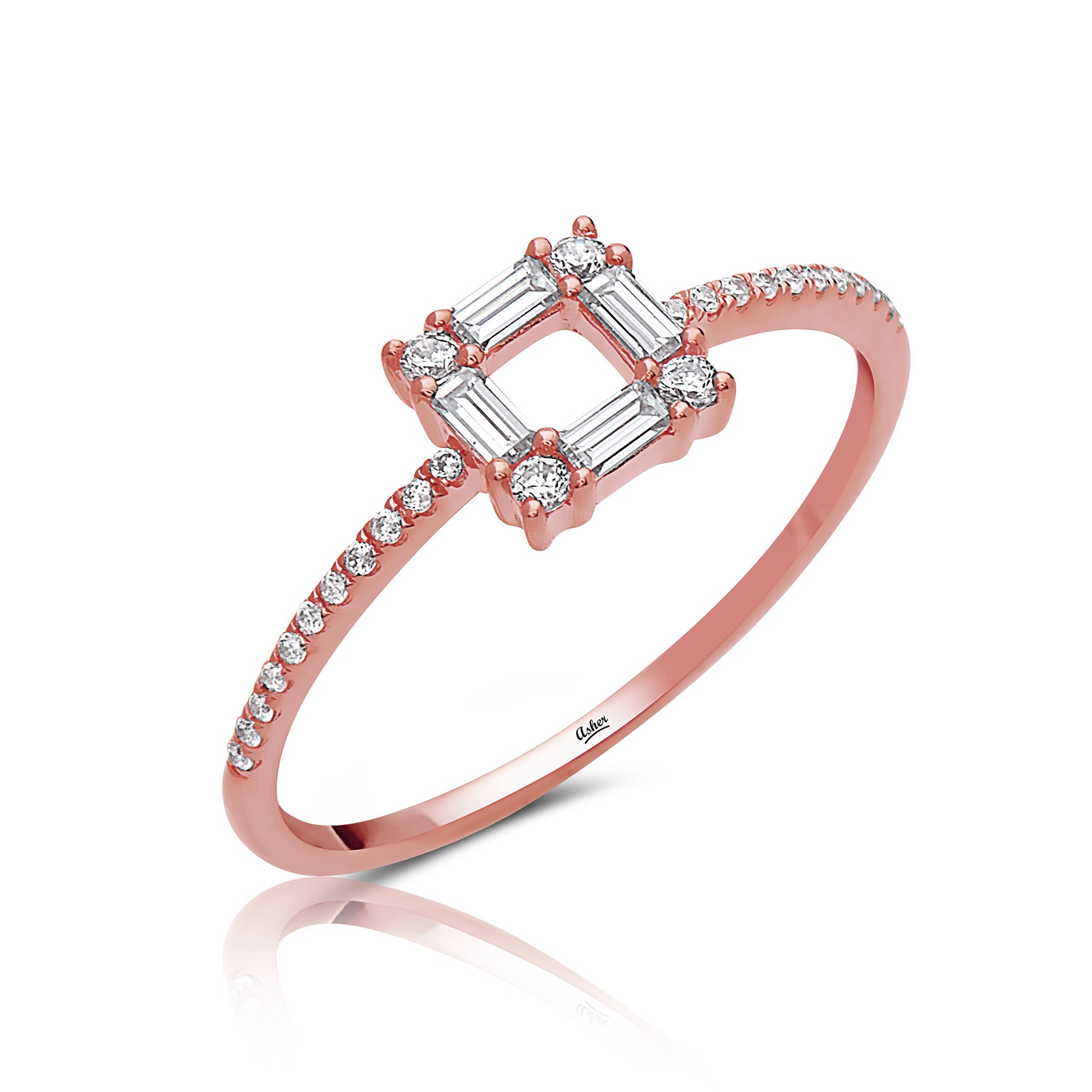 • 14k gold modern baguette diamond cluster set