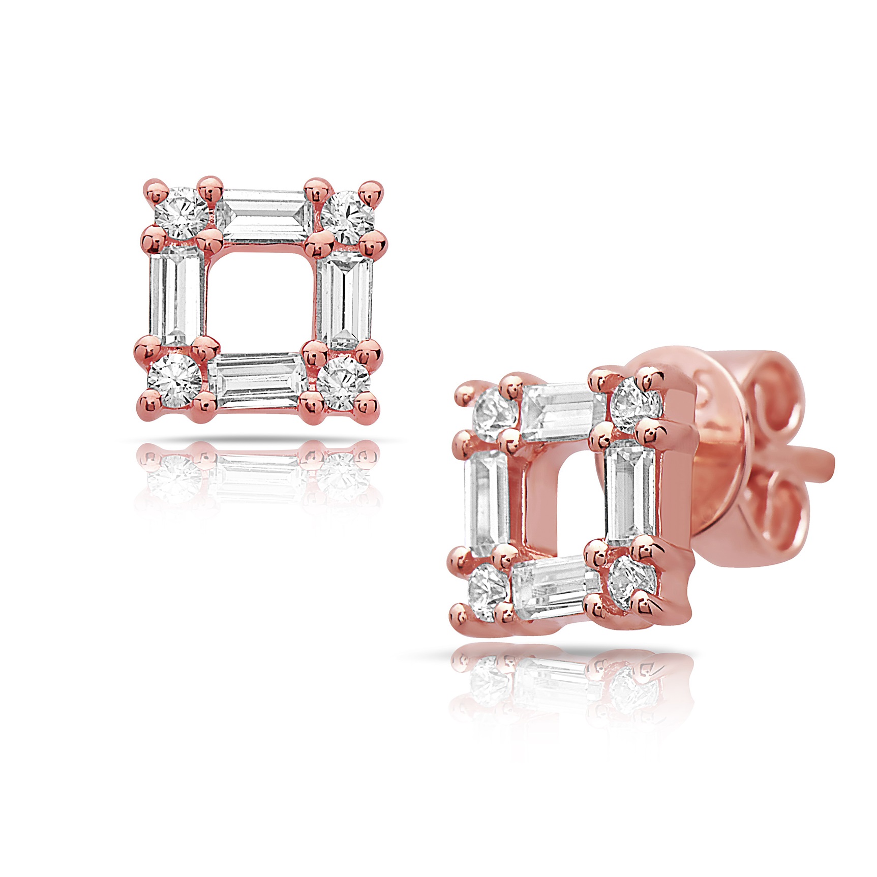 • 14k gold open square fashion studs