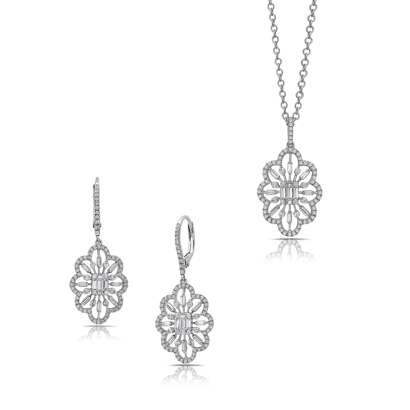 • 14k gold diamond baguette spray set