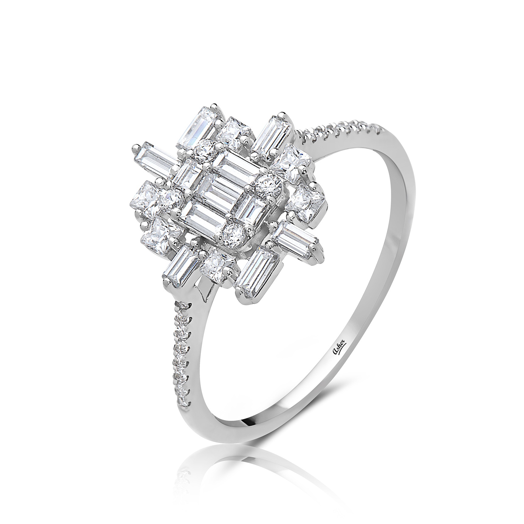 • 14k gold modern baguette diamond cluster ring