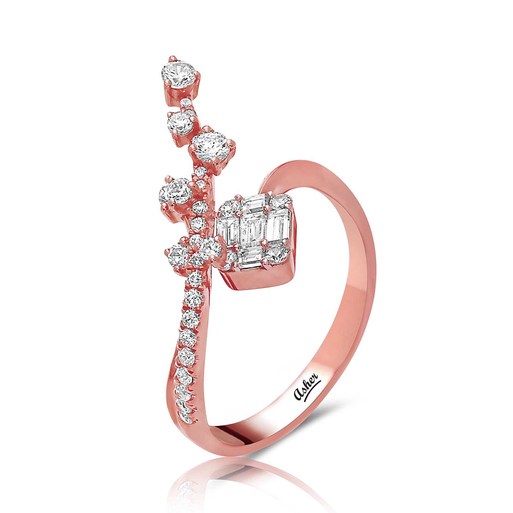 • 14k gold diamond baguette spray ring